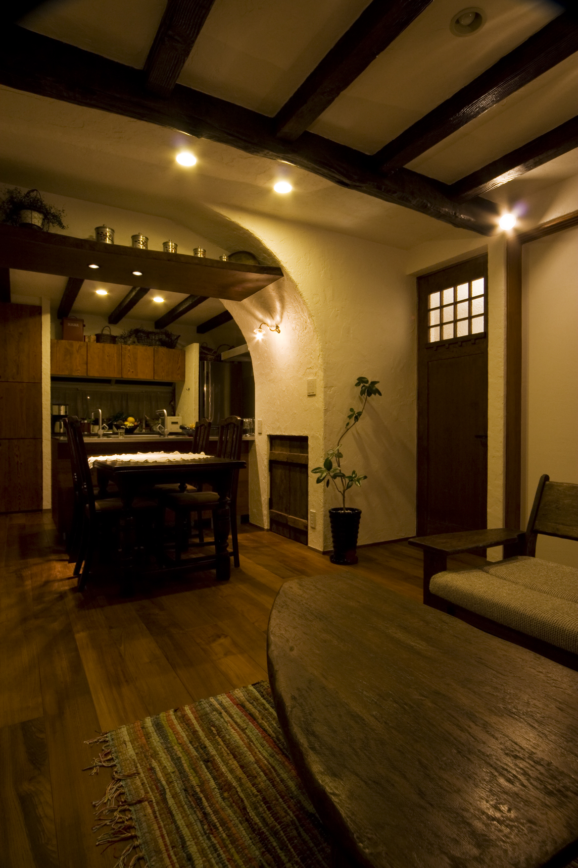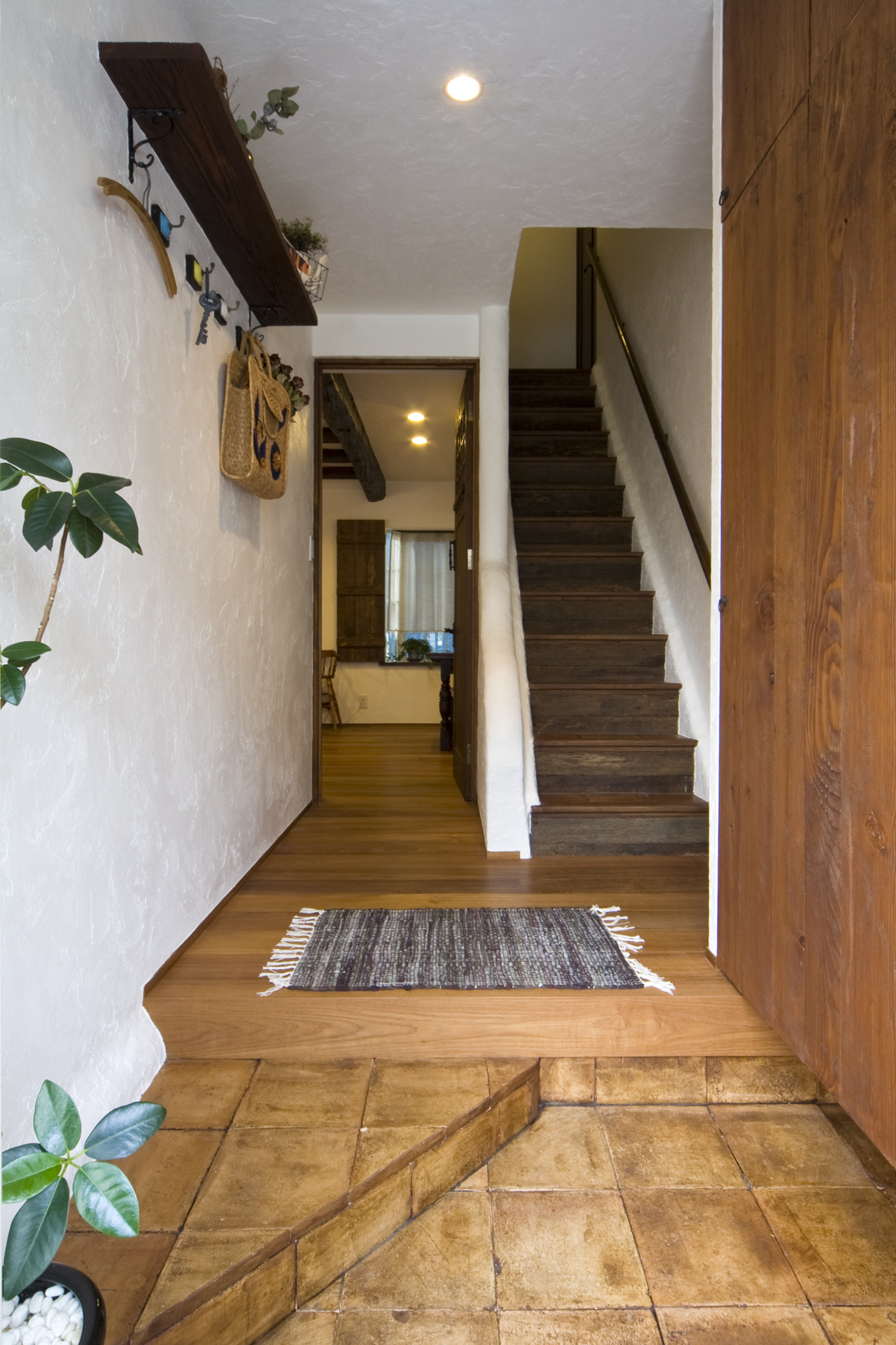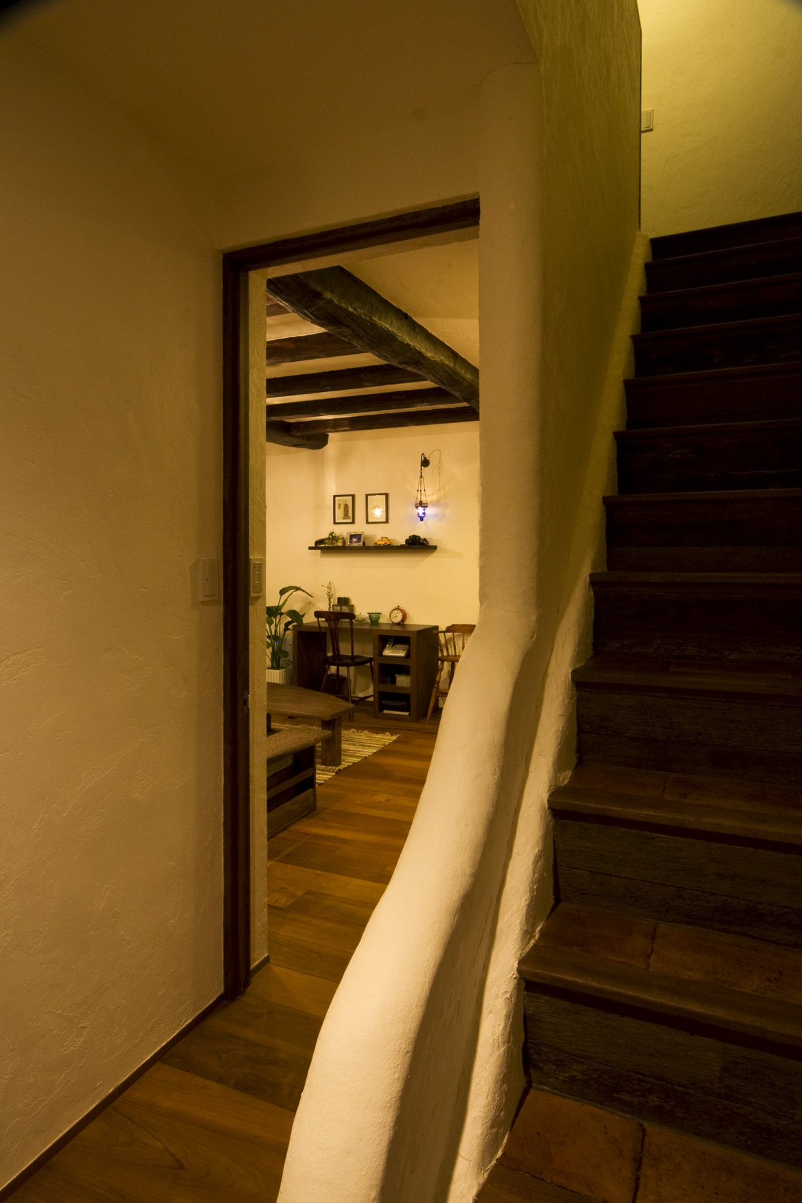 階段廻りの漆喰 デザインが特徴の家|La ferme
