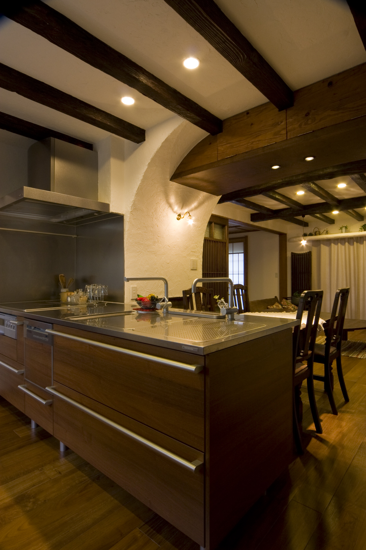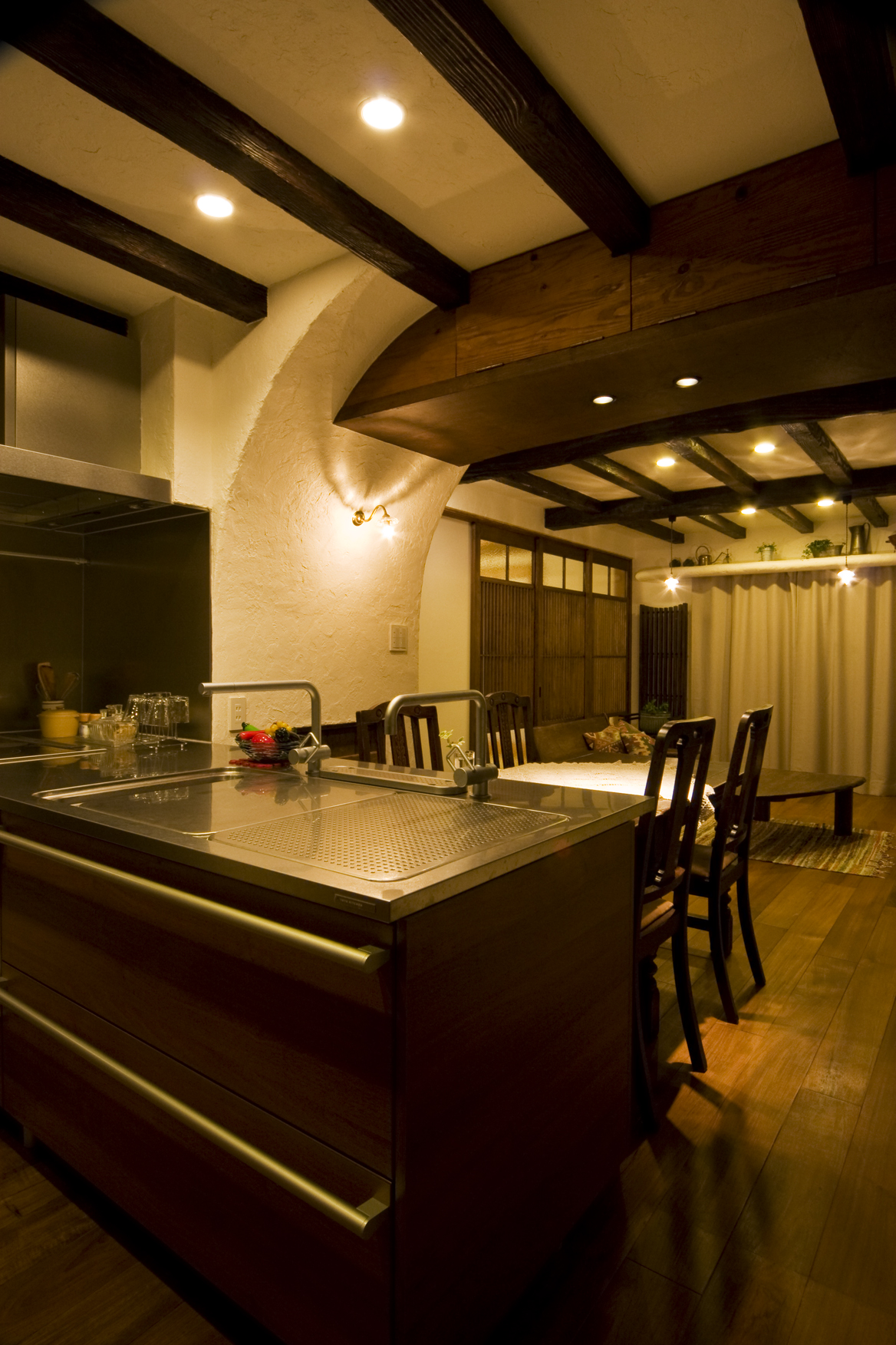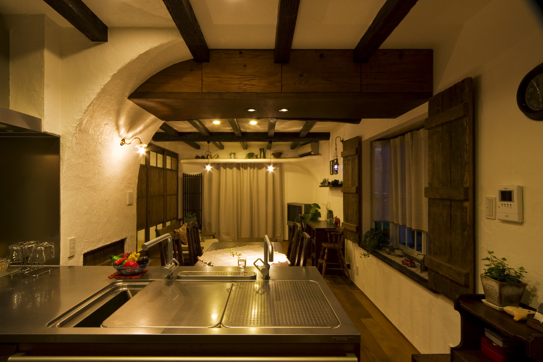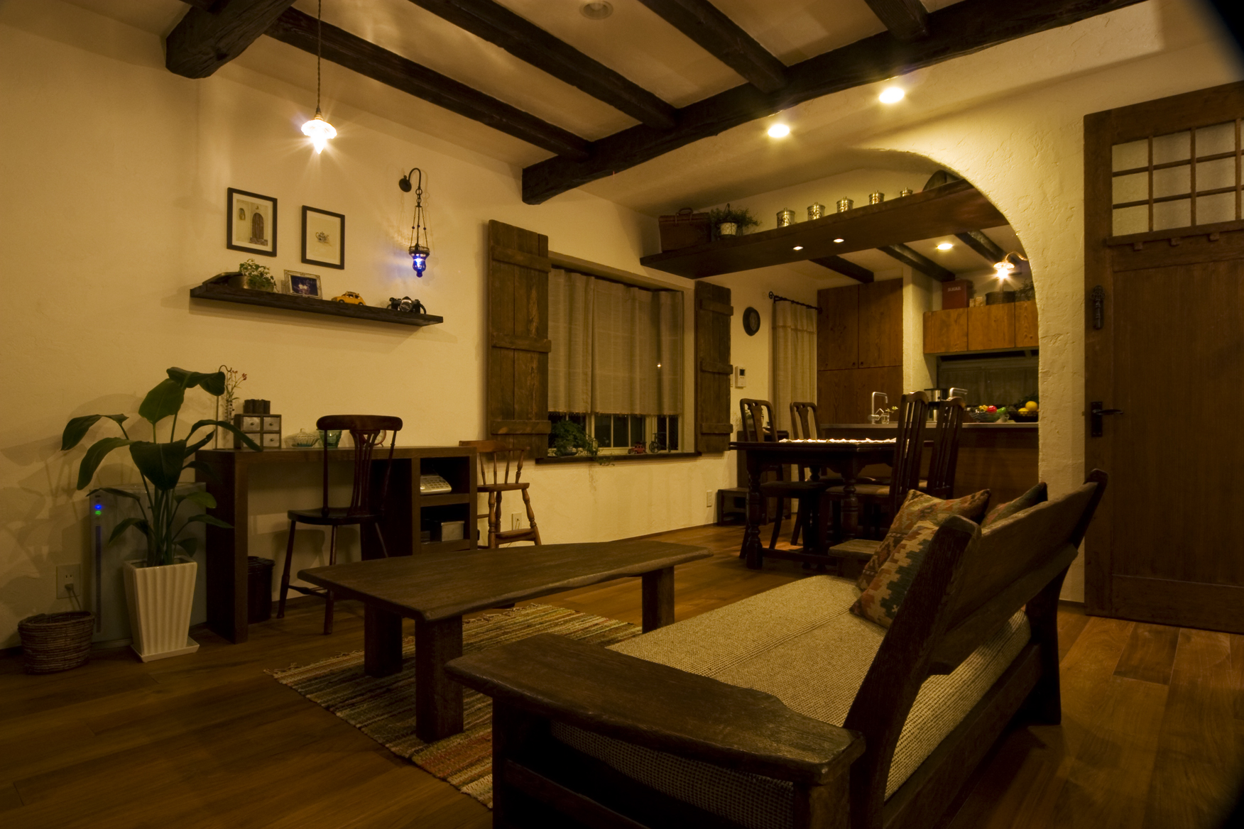 階段廻りの漆喰 デザインが特徴の家|La ferme