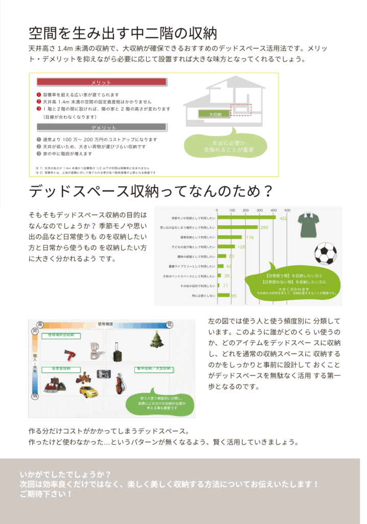 右の図の様に、気がつかない場所を上手く使って、収納場所を確保しましょう!