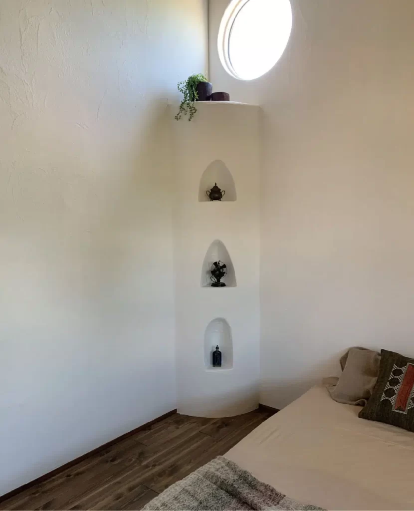 ”洞窟”を意味する造形。丸みのある空間に雑貨や器を美しく飾ることが出来ます。